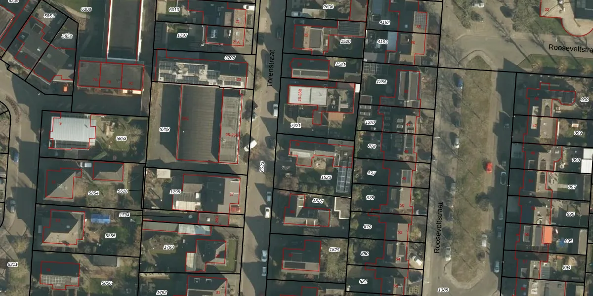 Het perceel waarop Torenstraat 28 staat heeft een oppervlakte van 510 m². Dit is een groot perceel. De perceeloppervlakte wordt geregistreerd door het Kadaster. Gedetailleerde informatie over de maten van dit perceel kunt u vinden in het rapport Kadastrale kaart met maatvoering van Torenstraat 28.