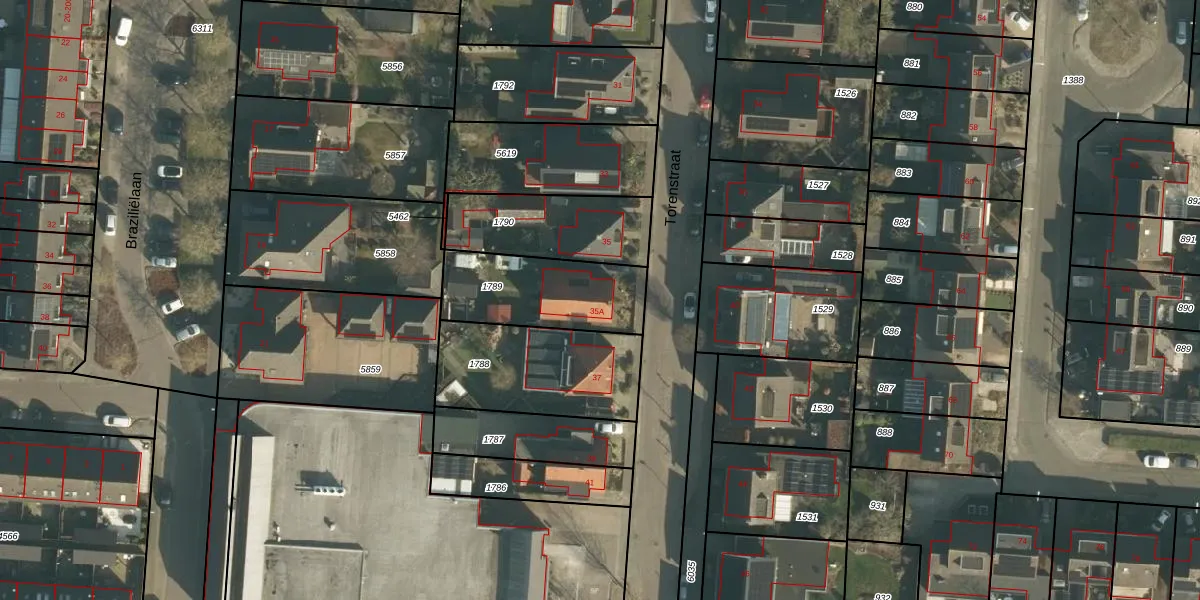 Het perceel waarop Torenstraat 35-A staat heeft een oppervlakte van 405 m². Dit is een groot perceel. De perceeloppervlakte wordt geregistreerd door het Kadaster. Gedetailleerde informatie over de maten van dit perceel kunt u vinden in het rapport Kadastrale kaart met maatvoering van Torenstraat 35-A.