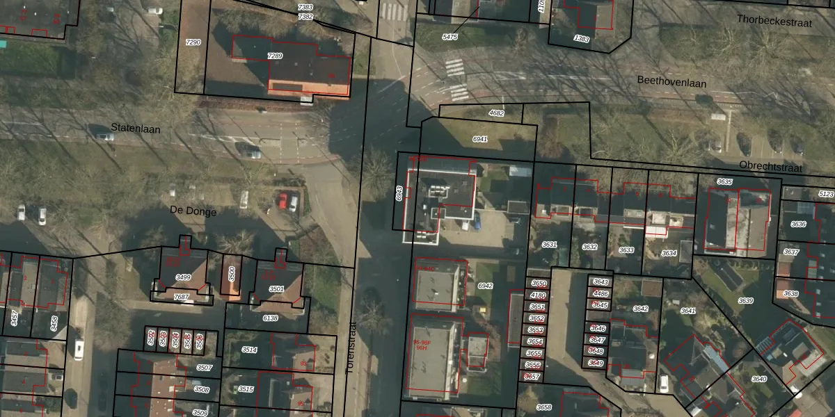Torenstraat 92 is gelegen op kadastraal perceel DNN00L6942. Deze kadastrale aanduiding is uniek en wordt gebruikt door het Kadaster om eigendomsrechten en andere zakelijke rechten vast te leggen. Het perceel maakt onderdeel uit van de kadastrale gemeente Drunen.