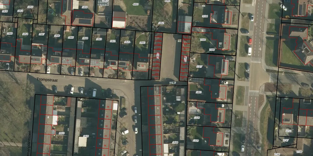 Het perceel waarop Trompstraat 12-G staat heeft een oppervlakte van 159 m². Dit is een middelgroot perceel. De perceeloppervlakte wordt geregistreerd door het Kadaster. Gedetailleerde informatie over de maten van dit perceel kunt u vinden in het rapport Kadastrale kaart met maatvoering van Trompstraat 12-G.