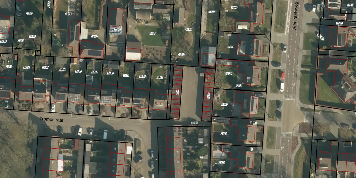 Het perceel waarop Trompstraat 18-G staat heeft een oppervlakte van 159 m². Dit is een middelgroot perceel. De perceeloppervlakte wordt geregistreerd door het Kadaster. Gedetailleerde informatie over de maten van dit perceel kunt u vinden in het rapport Kadastrale kaart met maatvoering van Trompstraat 18-G.