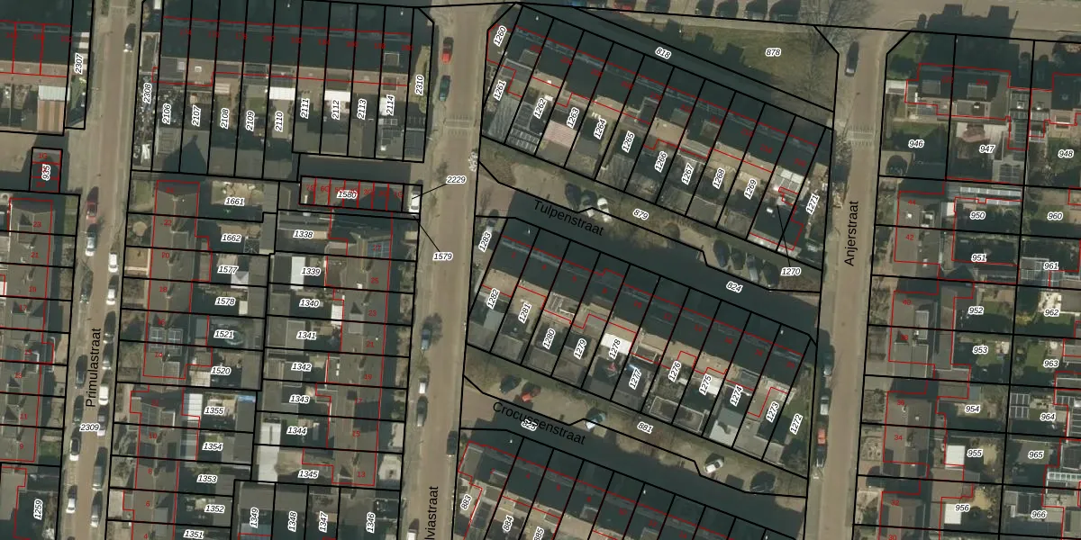 Gebruik de zoekbalk of klik op een perceel voor informatie over de adressen binnen dit perceel.