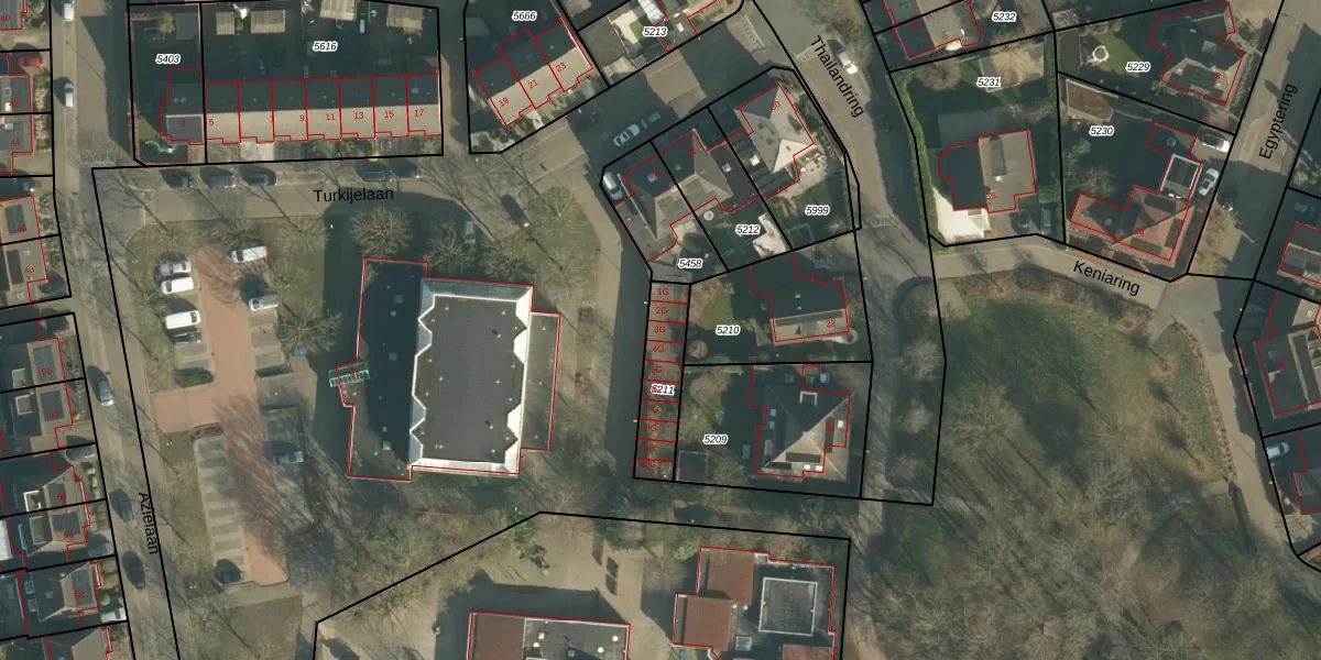 Het perceel waarop Turkijelaan 3-G staat heeft een oppervlakte van 180 m². Dit is een middelgroot perceel. De perceeloppervlakte wordt geregistreerd door het Kadaster. Gedetailleerde informatie over de maten van dit perceel kunt u vinden in het rapport Kadastrale kaart met maatvoering van Turkijelaan 3-G.