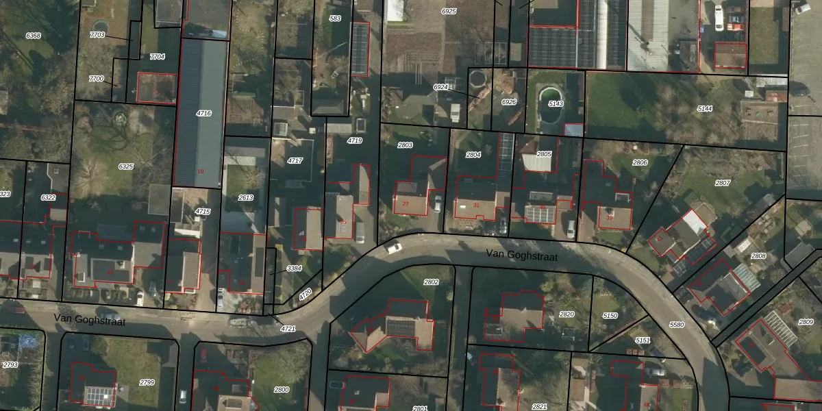 Het perceel waarop Van Goghstraat 27 staat heeft een oppervlakte van 439 m². Dit is een groot perceel. De perceeloppervlakte wordt geregistreerd door het Kadaster. Gedetailleerde informatie over de maten van dit perceel kunt u vinden in het rapport Kadastrale kaart met maatvoering van Van Goghstraat 27.