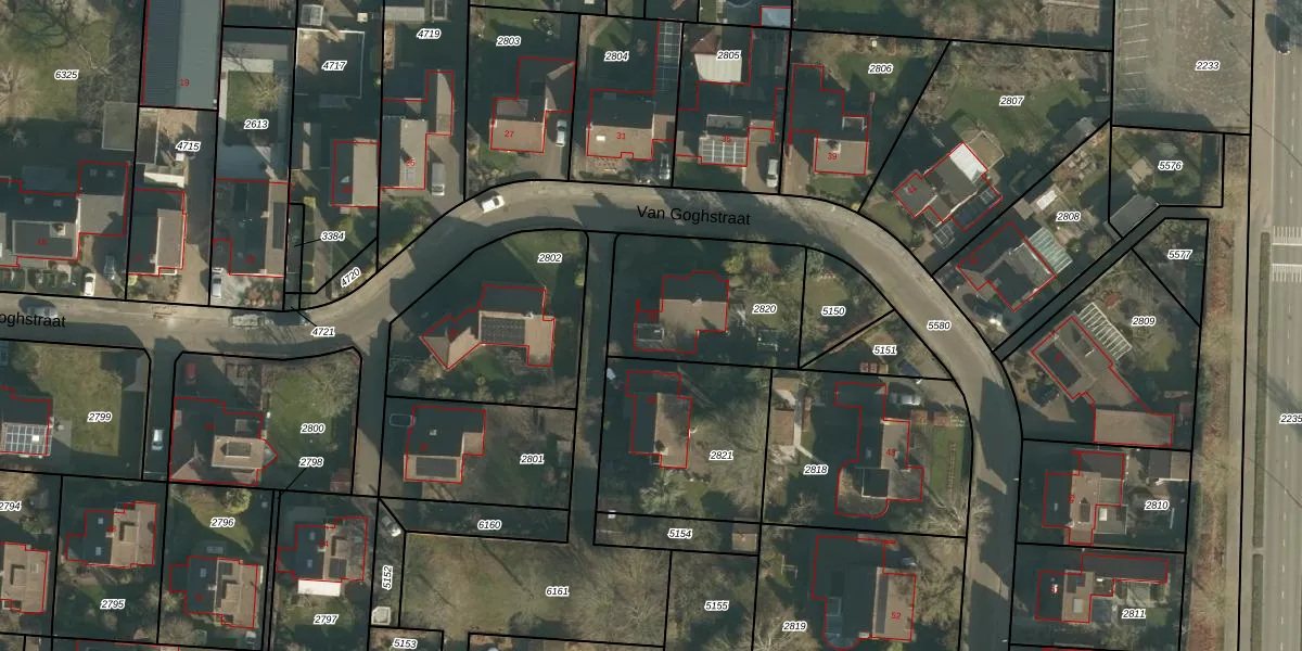 Het perceel waarop Van Goghstraat 32 staat heeft een oppervlakte van 559 m². Dit is een groot perceel. De perceeloppervlakte wordt geregistreerd door het Kadaster. Gedetailleerde informatie over de maten van dit perceel kunt u vinden in het rapport Kadastrale kaart met maatvoering van Van Goghstraat 32.