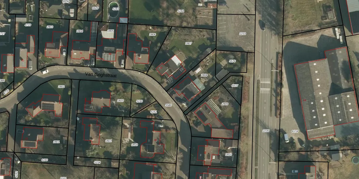 Het perceel waarop Van Goghstraat 43 staat heeft een oppervlakte van 455 m². Dit is een groot perceel. De perceeloppervlakte wordt geregistreerd door het Kadaster. Gedetailleerde informatie over de maten van dit perceel kunt u vinden in het rapport Kadastrale kaart met maatvoering van Van Goghstraat 43.