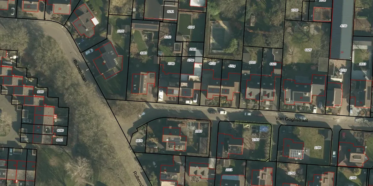Gebruik de zoekbalk of klik op een perceel voor informatie over de adressen binnen dit perceel.