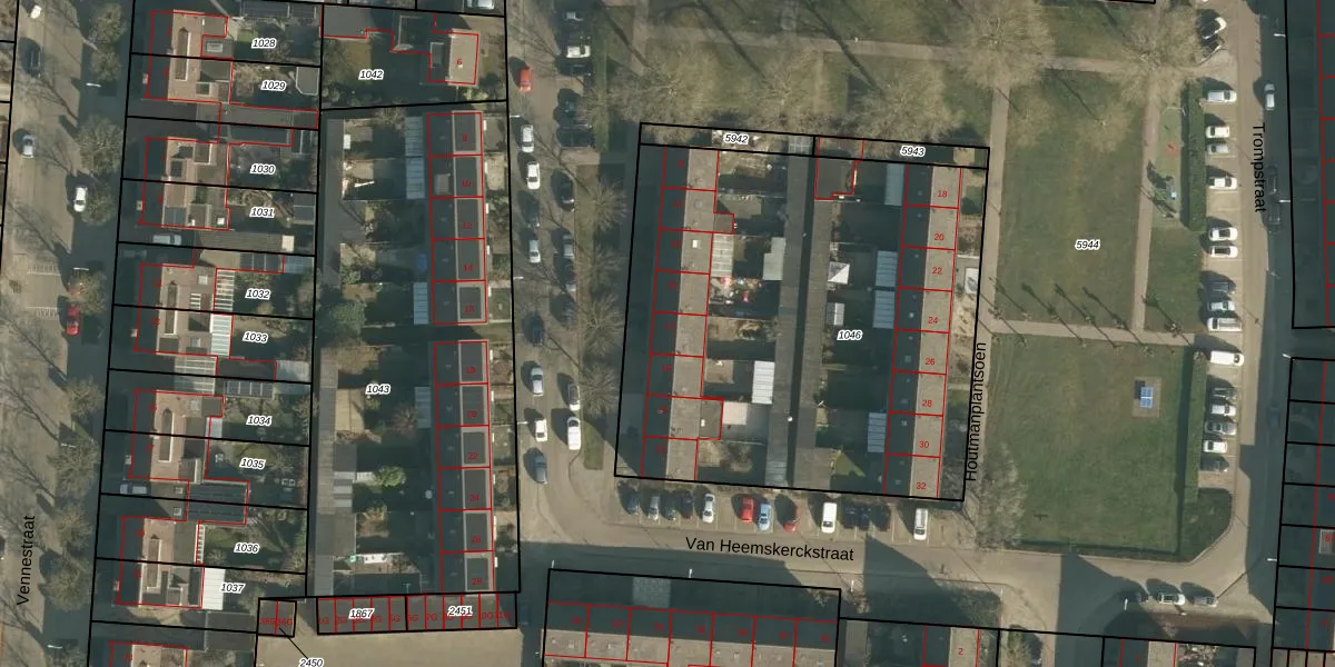 Het perceel waarop Van Heemskerckstraat 17 staat heeft een oppervlakte van 2613 m². Dit is een zeer groot perceel. De perceeloppervlakte wordt geregistreerd door het Kadaster. Gedetailleerde informatie over de maten van dit perceel kunt u vinden in het rapport Kadastrale kaart met maatvoering van Van Heemskerckstraat 17.
