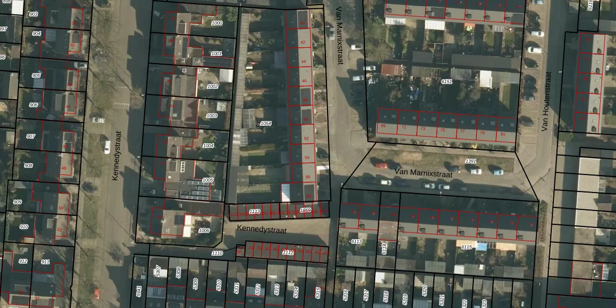 Van Marnixstraat 54 is gelegen op kadastraal perceel DNN00L1054. Deze kadastrale aanduiding is uniek en wordt gebruikt door het Kadaster om eigendomsrechten en andere zakelijke rechten vast te leggen. Het perceel maakt onderdeel uit van de kadastrale gemeente Drunen.