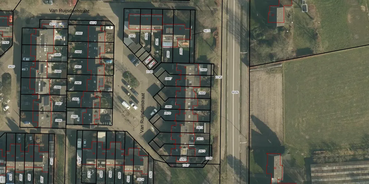 Van Ruijsdaelstraat 15 is gelegen op kadastraal perceel DNN00L2868. Deze kadastrale aanduiding is uniek en wordt gebruikt door het Kadaster om eigendomsrechten en andere zakelijke rechten vast te leggen. Het perceel maakt onderdeel uit van de kadastrale gemeente Drunen.