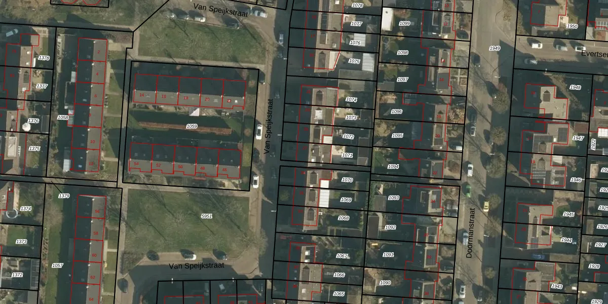 Van Speijkstraat 27 is gelegen op kadastraal perceel DNN00L1071. Deze kadastrale aanduiding is uniek en wordt gebruikt door het Kadaster om eigendomsrechten en andere zakelijke rechten vast te leggen. Het perceel maakt onderdeel uit van de kadastrale gemeente Drunen.