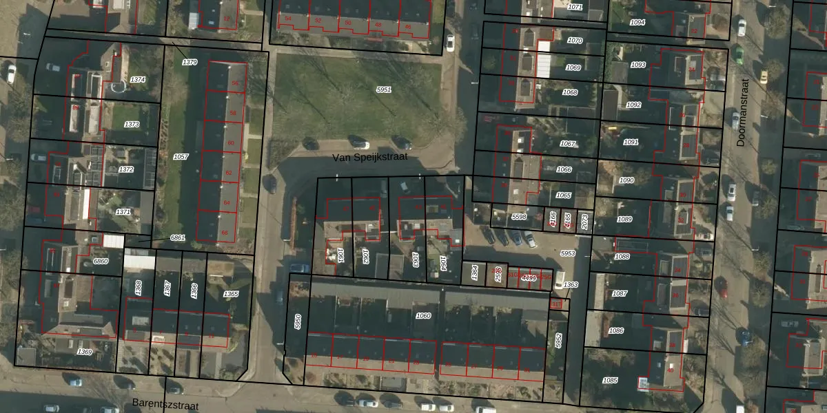 Het perceel waarop Van Speijkstraat 43 staat heeft een oppervlakte van 226 m². Dit is een middelgroot perceel. De perceeloppervlakte wordt geregistreerd door het Kadaster. Gedetailleerde informatie over de maten van dit perceel kunt u vinden in het rapport Kadastrale kaart met maatvoering van Van Speijkstraat 43.