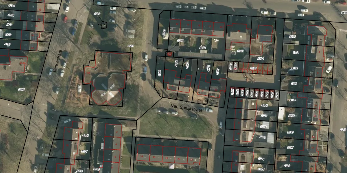 Van Speijkstraat 5 is gelegen op kadastraal perceel DNN00L1079. Deze kadastrale aanduiding is uniek en wordt gebruikt door het Kadaster om eigendomsrechten en andere zakelijke rechten vast te leggen. Het perceel maakt onderdeel uit van de kadastrale gemeente Drunen.