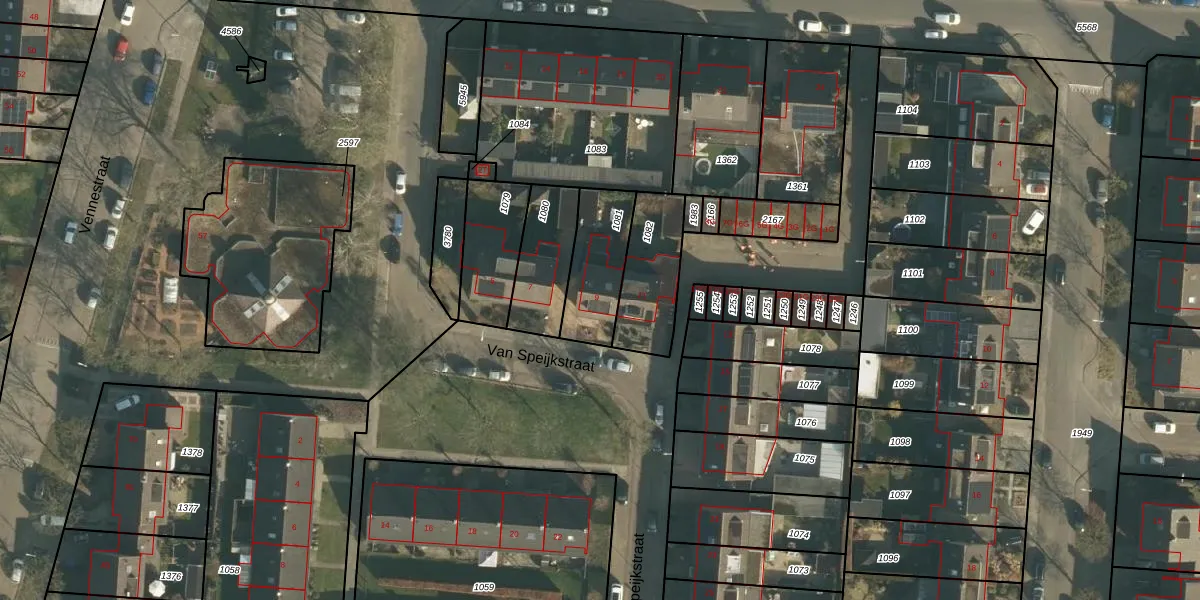 Van Speijkstraat 9 is gelegen op kadastraal perceel DNN00L1081. Deze kadastrale aanduiding is uniek en wordt gebruikt door het Kadaster om eigendomsrechten en andere zakelijke rechten vast te leggen. Het perceel maakt onderdeel uit van de kadastrale gemeente Drunen.