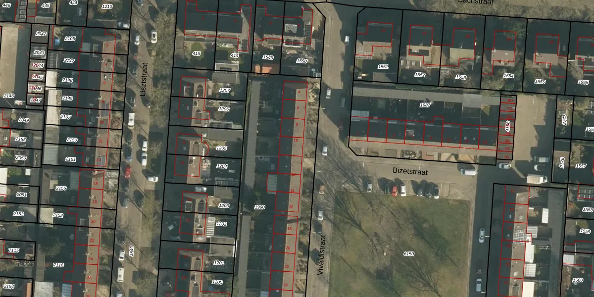 Het perceel waarop Vivaldistraat 10 staat heeft een oppervlakte van 2095 m². Dit is een zeer groot perceel. De perceeloppervlakte wordt geregistreerd door het Kadaster. Gedetailleerde informatie over de maten van dit perceel kunt u vinden in het rapport Kadastrale kaart met maatvoering van Vivaldistraat 10.