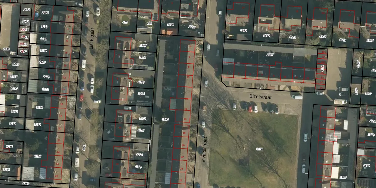 Het perceel waarop Vivaldistraat 12 staat heeft een oppervlakte van 2095 m². Dit is een zeer groot perceel. De perceeloppervlakte wordt geregistreerd door het Kadaster. Gedetailleerde informatie over de maten van dit perceel kunt u vinden in het rapport Kadastrale kaart met maatvoering van Vivaldistraat 12.