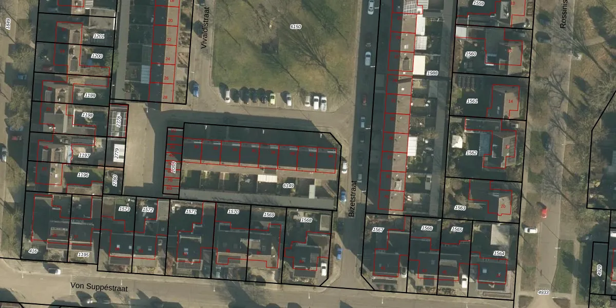Het perceel waarop Vivaldistraat 42 staat heeft een oppervlakte van 1278 m². Dit is een zeer groot perceel. De perceeloppervlakte wordt geregistreerd door het Kadaster. Gedetailleerde informatie over de maten van dit perceel kunt u vinden in het rapport Kadastrale kaart met maatvoering van Vivaldistraat 42.
