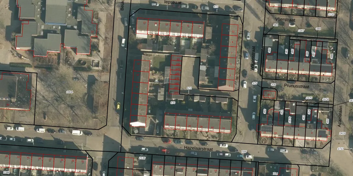 Het perceel waarop Wilgenstraat 15-G staat heeft een oppervlakte van 4290 m². Dit is een zeer groot perceel. De perceeloppervlakte wordt geregistreerd door het Kadaster. Gedetailleerde informatie over de maten van dit perceel kunt u vinden in het rapport Kadastrale kaart met maatvoering van Wilgenstraat 15-G.