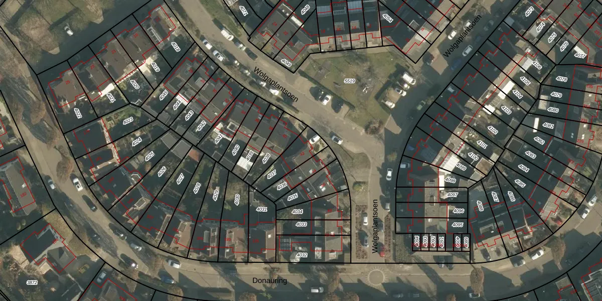 Wolgaplantsoen 42 is gelegen op kadastraal perceel DNN00L4037. Deze kadastrale aanduiding is uniek en wordt gebruikt door het Kadaster om eigendomsrechten en andere zakelijke rechten vast te leggen. Het perceel maakt onderdeel uit van de kadastrale gemeente Drunen.