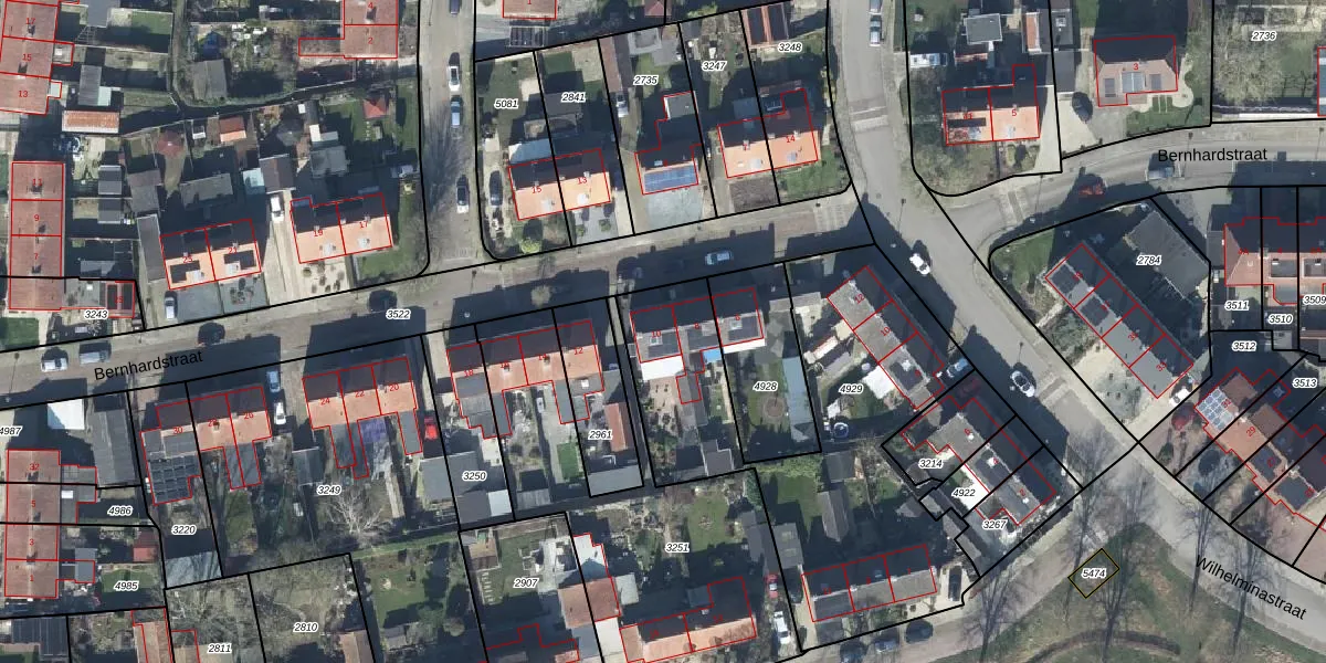 Bernhardstraat 10 is gelegen op kadastraal perceel DTN03B4929. Deze kadastrale aanduiding is uniek en wordt gebruikt door het Kadaster om eigendomsrechten en andere zakelijke rechten vast te leggen. Het perceel maakt onderdeel uit van de kadastrale gemeente Druten.