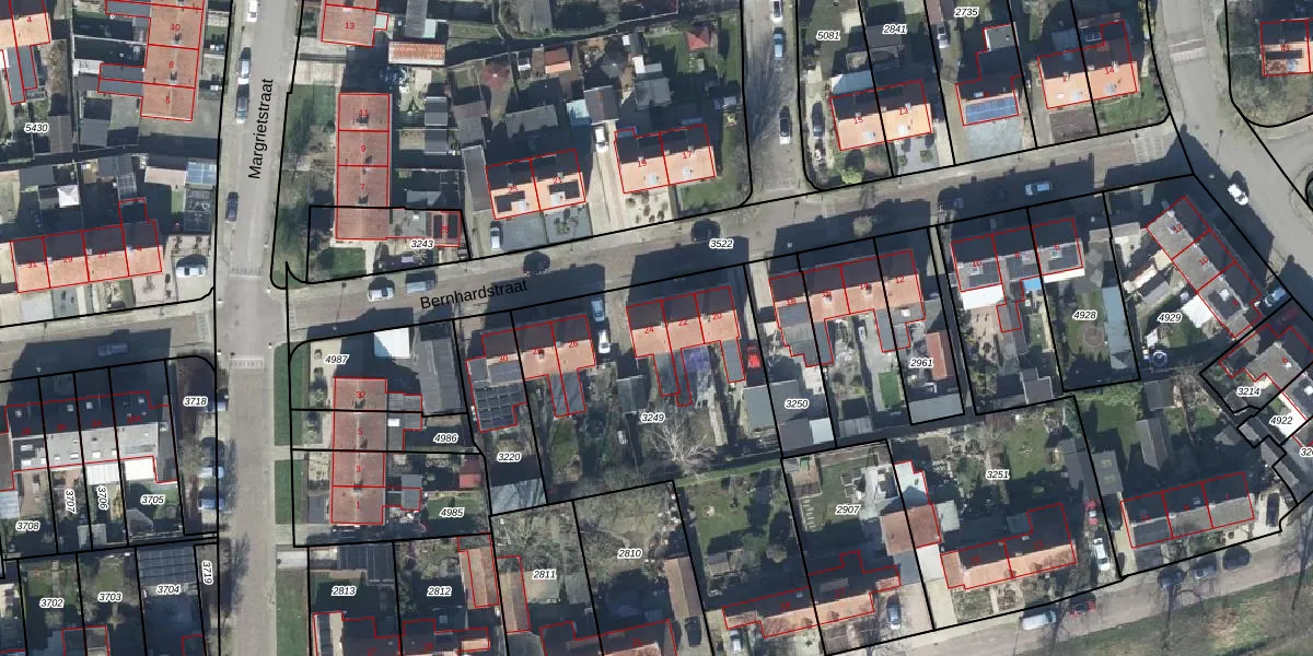 Bernhardstraat 24 is gelegen op kadastraal perceel DTN03B3249. Deze kadastrale aanduiding is uniek en wordt gebruikt door het Kadaster om eigendomsrechten en andere zakelijke rechten vast te leggen. Het perceel maakt onderdeel uit van de kadastrale gemeente Druten.