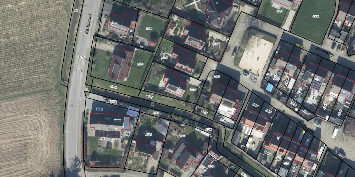 Het perceel waarop Bieskamp 28 staat heeft een oppervlakte van 500 m². Dit is een groot perceel. De perceeloppervlakte wordt geregistreerd door het Kadaster. Gedetailleerde informatie over de maten van dit perceel kunt u vinden in het rapport Kadastrale kaart met maatvoering van Bieskamp 28.