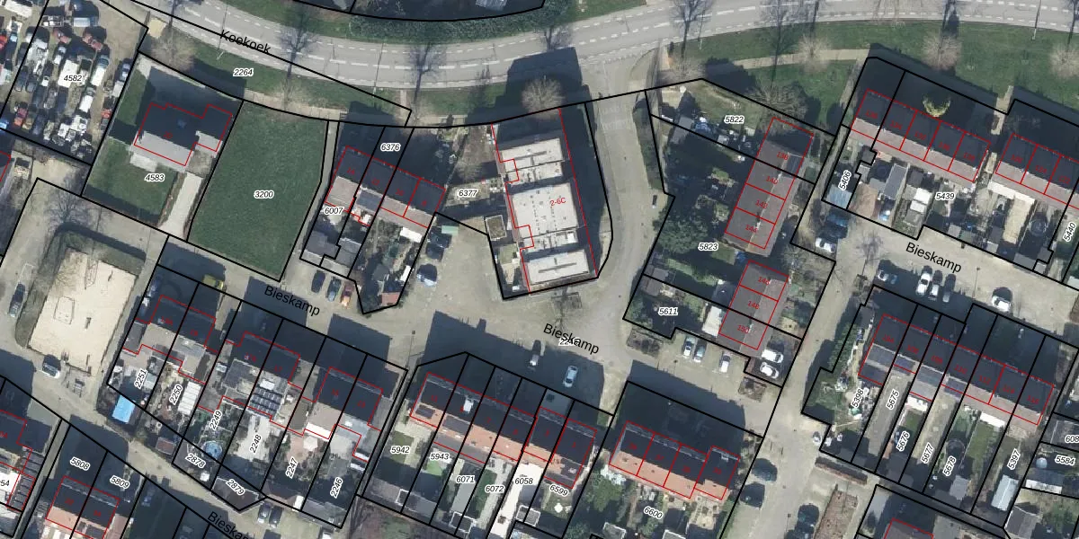 Het perceel waarop Bieskamp 6-C staat heeft een oppervlakte van 1153 m². Dit is een zeer groot perceel. De perceeloppervlakte wordt geregistreerd door het Kadaster. Gedetailleerde informatie over de maten van dit perceel kunt u vinden in het rapport Kadastrale kaart met maatvoering van Bieskamp 6-C.