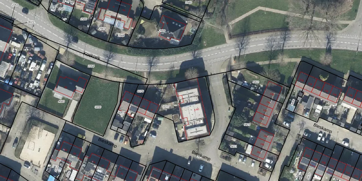 Het perceel waarop Bieskamp 6 staat heeft een oppervlakte van 1153 m². Dit is een zeer groot perceel. De perceeloppervlakte wordt geregistreerd door het Kadaster. Gedetailleerde informatie over de maten van dit perceel kunt u vinden in het rapport Kadastrale kaart met maatvoering van Bieskamp 6.