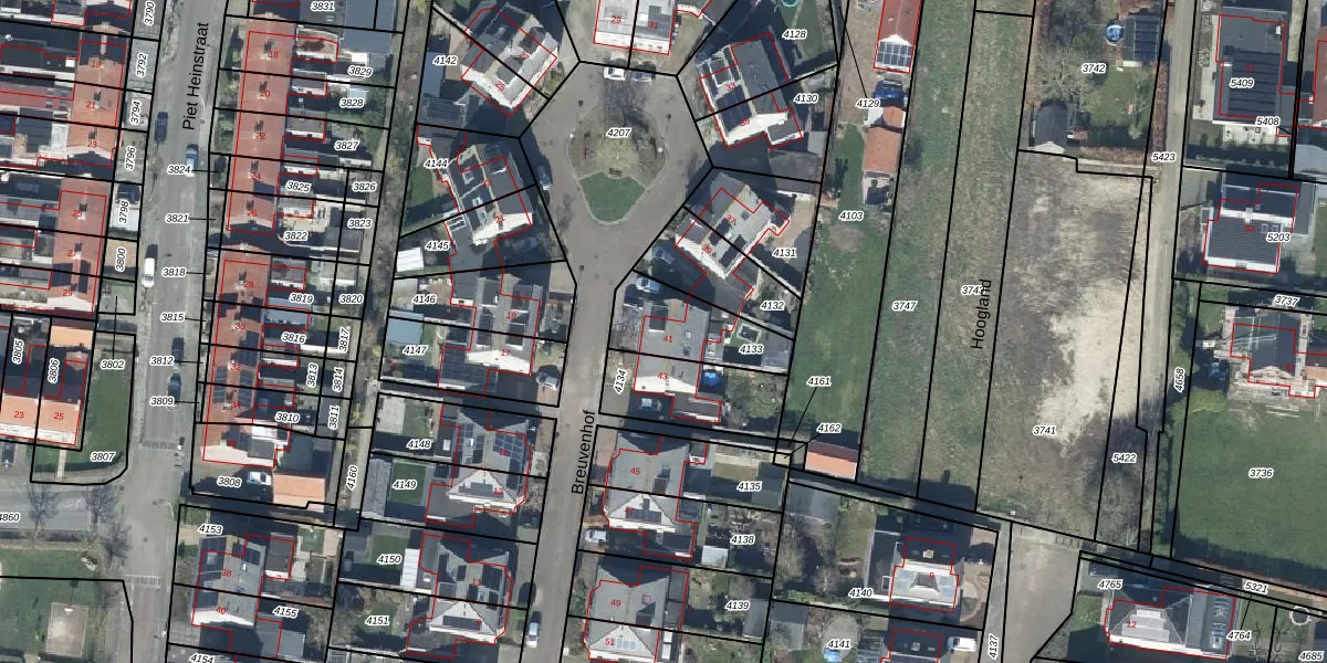 Het perceel waarop Breuvenhof 41 staat heeft een oppervlakte van 249 m². Dit is een middelgroot perceel. De perceeloppervlakte wordt geregistreerd door het Kadaster. Gedetailleerde informatie over de maten van dit perceel kunt u vinden in het rapport Kadastrale kaart met maatvoering van Breuvenhof 41.