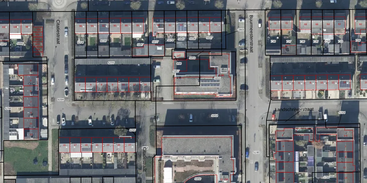 Buurmeesterstraat 7-A is gelegen op kadastraal perceel DTN03C5955. Deze kadastrale aanduiding is uniek en wordt gebruikt door het Kadaster om eigendomsrechten en andere zakelijke rechten vast te leggen. Het perceel maakt onderdeel uit van de kadastrale gemeente Druten.