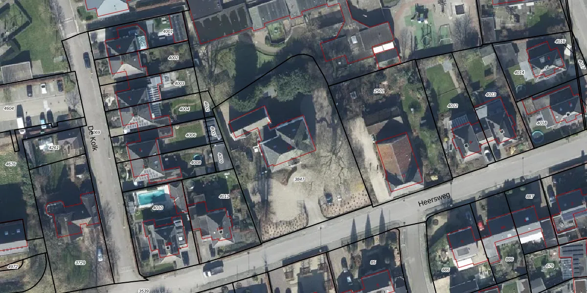 Het perceel waarop Heersweg 13 staat heeft een oppervlakte van 2040 m². Dit is een zeer groot perceel. De perceeloppervlakte wordt geregistreerd door het Kadaster. Gedetailleerde informatie over de maten van dit perceel kunt u vinden in het rapport Kadastrale kaart met maatvoering van Heersweg 13.