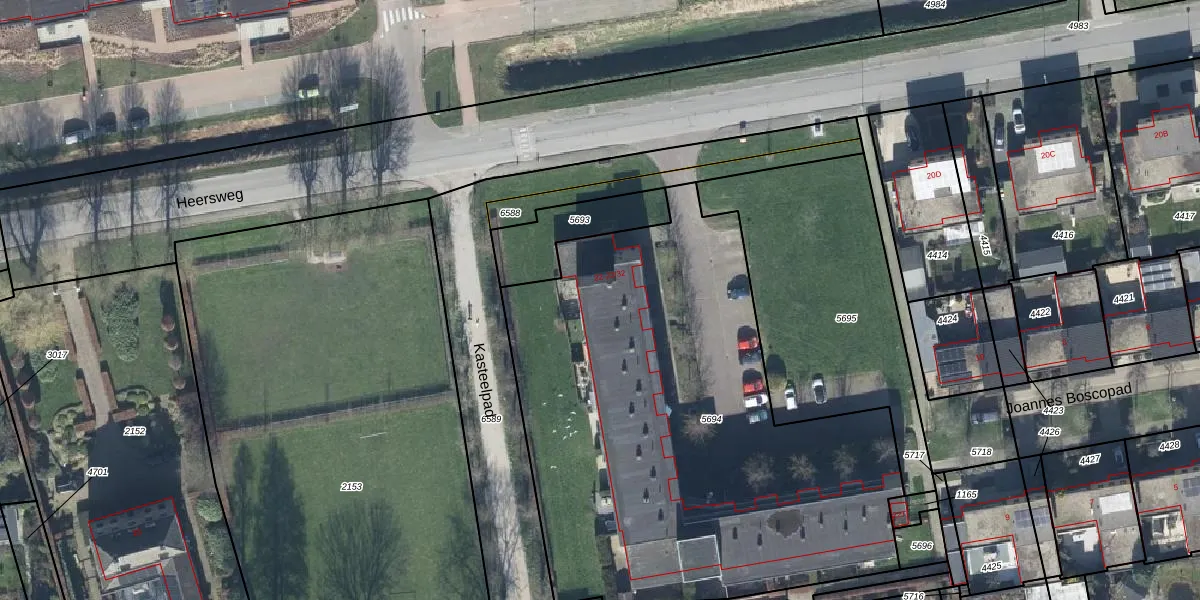 Het perceel waarop Heersweg 22-30 staat heeft een oppervlakte van 3025 m². Dit is een zeer groot perceel. De perceeloppervlakte wordt geregistreerd door het Kadaster. Gedetailleerde informatie over de maten van dit perceel kunt u vinden in het rapport Kadastrale kaart met maatvoering van Heersweg 22-30.