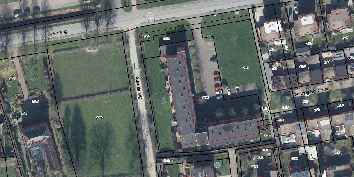 Het perceel waarop Heersweg 22-28 staat heeft een oppervlakte van 3025 m². Dit is een zeer groot perceel. De perceeloppervlakte wordt geregistreerd door het Kadaster. Gedetailleerde informatie over de maten van dit perceel kunt u vinden in het rapport Kadastrale kaart met maatvoering van Heersweg 22-28.