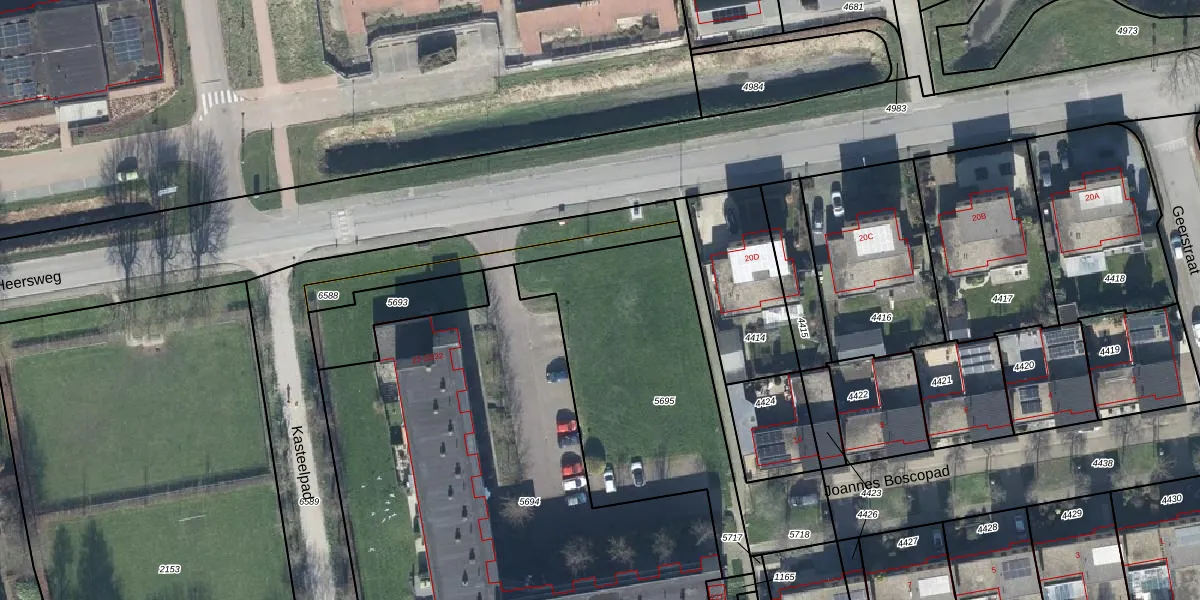 Het perceel waarop Heersweg 22-52 staat heeft een oppervlakte van 1095 m². Dit is een zeer groot perceel. De perceeloppervlakte wordt geregistreerd door het Kadaster. Gedetailleerde informatie over de maten van dit perceel kunt u vinden in het rapport Kadastrale kaart met maatvoering van Heersweg 22-52.