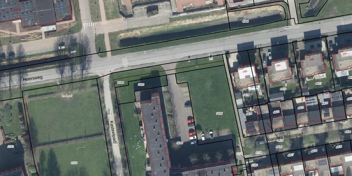 Heersweg 22-54 is gelegen op kadastraal perceel DTN03C5694. Deze kadastrale aanduiding is uniek en wordt gebruikt door het Kadaster om eigendomsrechten en andere zakelijke rechten vast te leggen. Het perceel maakt onderdeel uit van de kadastrale gemeente Druten.