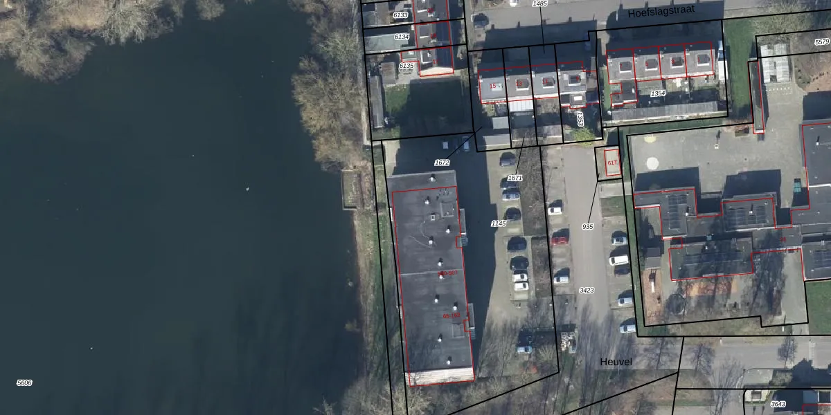 Het perceel waarop Heuvel 153 staat heeft een oppervlakte van 2350 m². Dit is een zeer groot perceel. De perceeloppervlakte wordt geregistreerd door het Kadaster. Gedetailleerde informatie over de maten van dit perceel kunt u vinden in het rapport Kadastrale kaart met maatvoering van Heuvel 153.