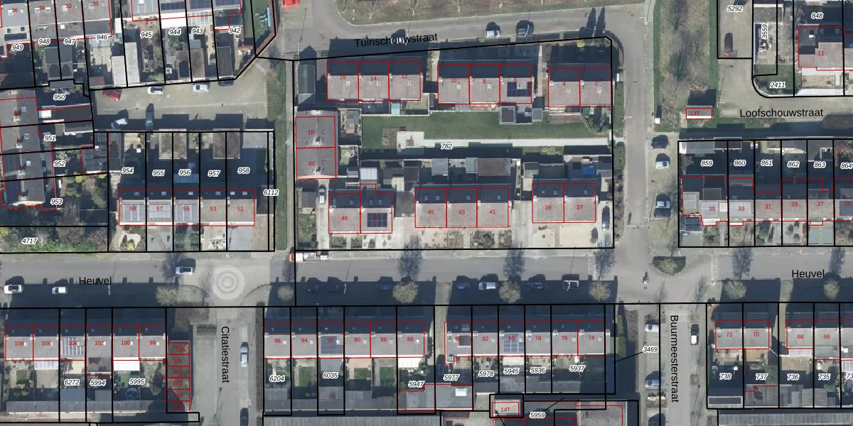Het perceel waarop Heuvel 45 staat heeft een oppervlakte van 3510 m². Dit is een zeer groot perceel. De perceeloppervlakte wordt geregistreerd door het Kadaster. Gedetailleerde informatie over de maten van dit perceel kunt u vinden in het rapport Kadastrale kaart met maatvoering van Heuvel 45.