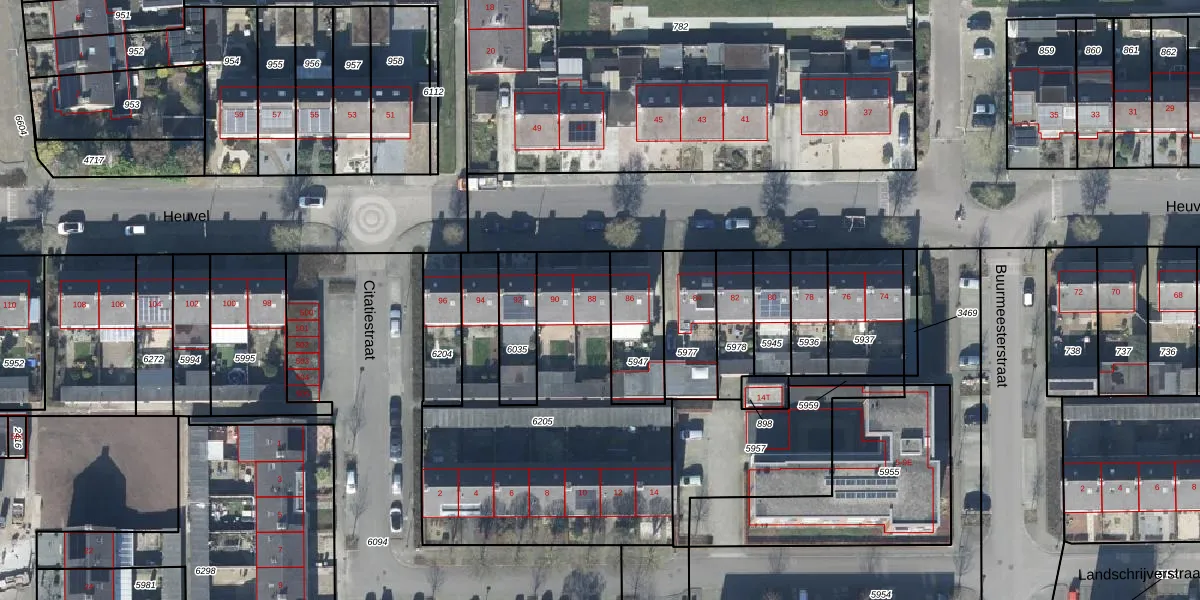 Heuvel 88 is gelegen op kadastraal perceel DTN03C6205. Deze kadastrale aanduiding is uniek en wordt gebruikt door het Kadaster om eigendomsrechten en andere zakelijke rechten vast te leggen. Het perceel maakt onderdeel uit van de kadastrale gemeente Druten.