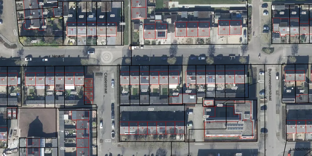 Heuvel 90 is gelegen op kadastraal perceel DTN03C6205. Deze kadastrale aanduiding is uniek en wordt gebruikt door het Kadaster om eigendomsrechten en andere zakelijke rechten vast te leggen. Het perceel maakt onderdeel uit van de kadastrale gemeente Druten.
