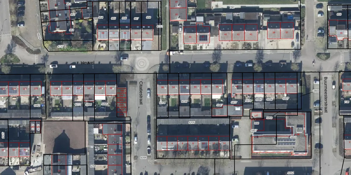 Heuvel 94 is gelegen op kadastraal perceel DTN03C6205. Deze kadastrale aanduiding is uniek en wordt gebruikt door het Kadaster om eigendomsrechten en andere zakelijke rechten vast te leggen. Het perceel maakt onderdeel uit van de kadastrale gemeente Druten.