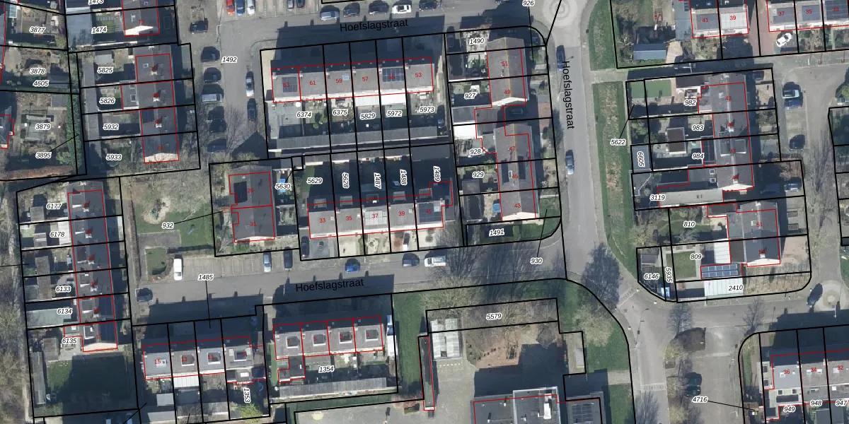 Het perceel waarop Hoefslagstraat 41 staat heeft een oppervlakte van 255 m². Dit is een middelgroot perceel. De perceeloppervlakte wordt geregistreerd door het Kadaster. Gedetailleerde informatie over de maten van dit perceel kunt u vinden in het rapport Kadastrale kaart met maatvoering van Hoefslagstraat 41.