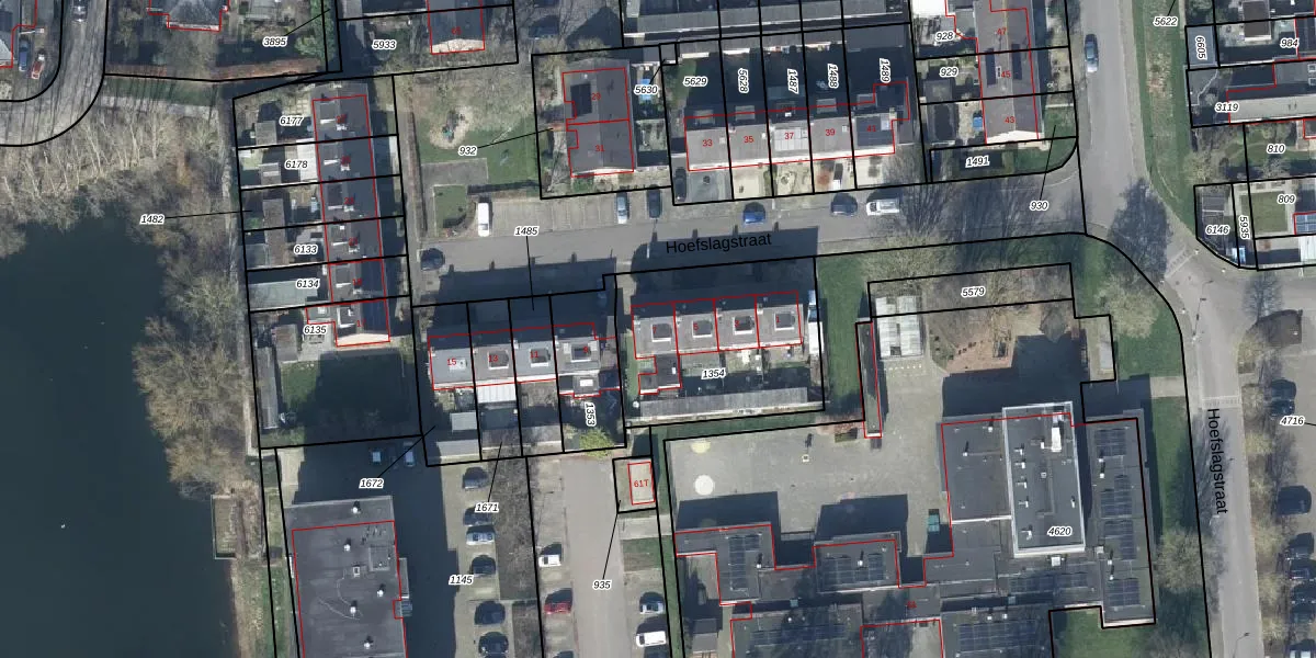 Het perceel waarop Hoefslagstraat 7 staat heeft een oppervlakte van 739 m². Dit is een groot perceel. De perceeloppervlakte wordt geregistreerd door het Kadaster. Gedetailleerde informatie over de maten van dit perceel kunt u vinden in het rapport Kadastrale kaart met maatvoering van Hoefslagstraat 7.