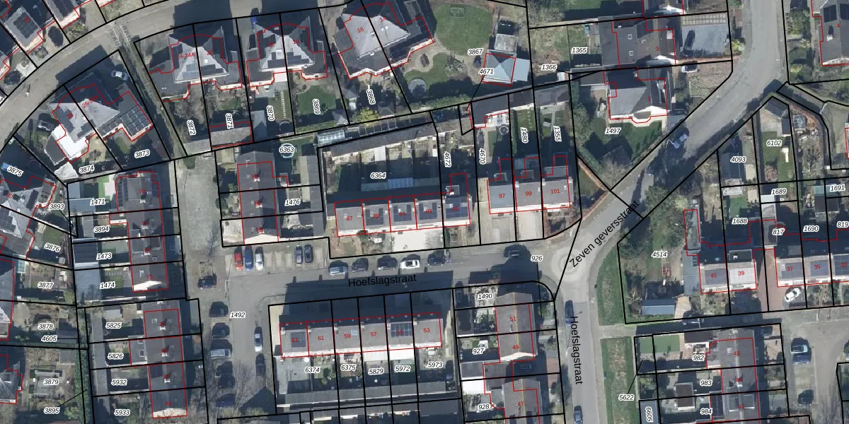 Hoefslagstraat 93 is gelegen op kadastraal perceel DTN03C6364. Deze kadastrale aanduiding is uniek en wordt gebruikt door het Kadaster om eigendomsrechten en andere zakelijke rechten vast te leggen. Het perceel maakt onderdeel uit van de kadastrale gemeente Druten.