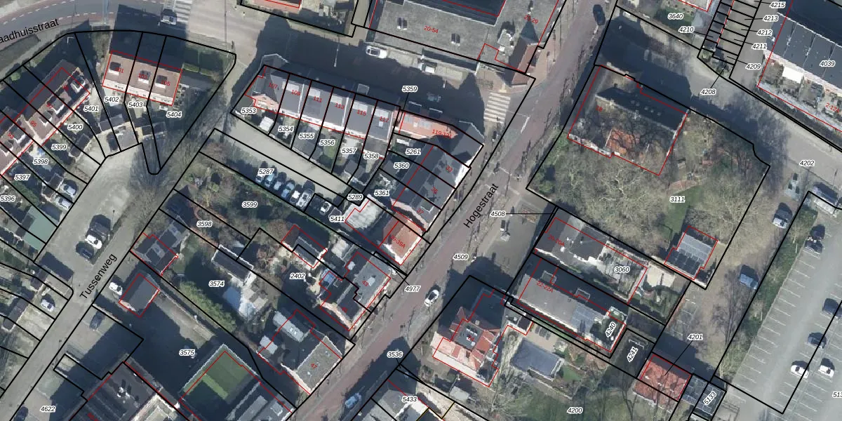 Hogestraat 37 is gelegen op kadastraal perceel DTN03B5361. Deze kadastrale aanduiding is uniek en wordt gebruikt door het Kadaster om eigendomsrechten en andere zakelijke rechten vast te leggen. Het perceel maakt onderdeel uit van de kadastrale gemeente Druten.