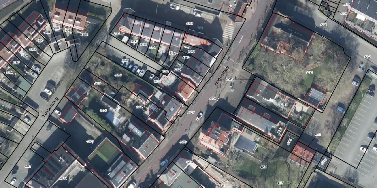 Hogestraat 39-A is gelegen op kadastraal perceel DTN03B5411. Deze kadastrale aanduiding is uniek en wordt gebruikt door het Kadaster om eigendomsrechten en andere zakelijke rechten vast te leggen. Het perceel maakt onderdeel uit van de kadastrale gemeente Druten.