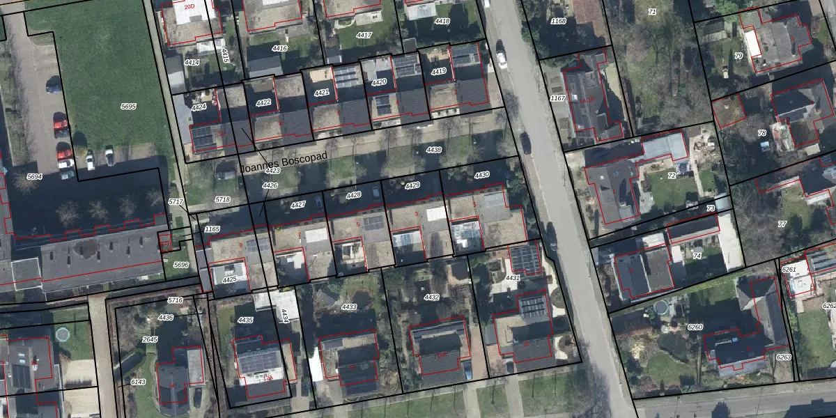 Het perceel waarop Joannes Boscopad 3 staat heeft een oppervlakte van 295 m². Dit is een middelgroot perceel. De perceeloppervlakte wordt geregistreerd door het Kadaster. Gedetailleerde informatie over de maten van dit perceel kunt u vinden in het rapport Kadastrale kaart met maatvoering van Joannes Boscopad 3.