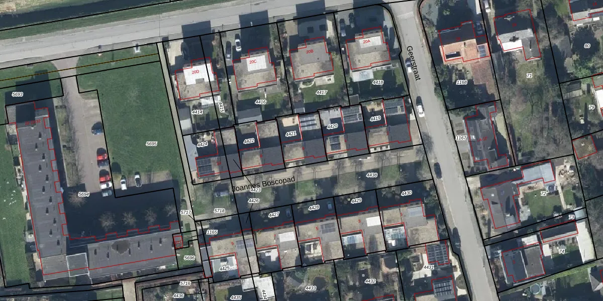 Joannes Boscopad 6 is gelegen op kadastraal perceel DTN03C4421. Deze kadastrale aanduiding is uniek en wordt gebruikt door het Kadaster om eigendomsrechten en andere zakelijke rechten vast te leggen. Het perceel maakt onderdeel uit van de kadastrale gemeente Druten.