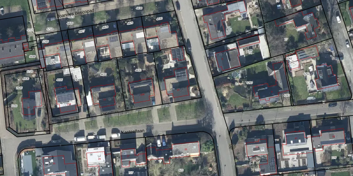 Het perceel waarop Kasteellaan 10 staat heeft een oppervlakte van 636 m². Dit is een groot perceel. De perceeloppervlakte wordt geregistreerd door het Kadaster. Gedetailleerde informatie over de maten van dit perceel kunt u vinden in het rapport Kadastrale kaart met maatvoering van Kasteellaan 10.