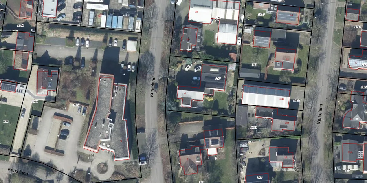 Kerkeland 4 is gelegen op kadastraal perceel DTN03D947. Deze kadastrale aanduiding is uniek en wordt gebruikt door het Kadaster om eigendomsrechten en andere zakelijke rechten vast te leggen. Het perceel maakt onderdeel uit van de kadastrale gemeente Druten.