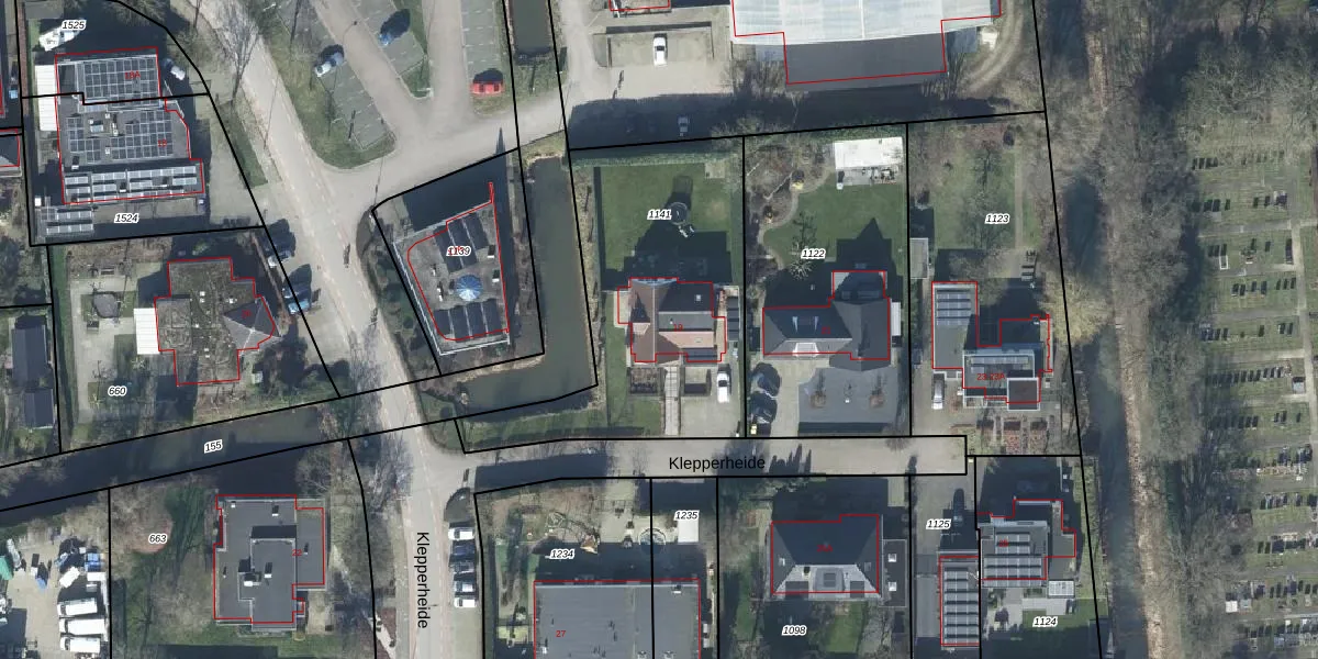 Het perceel waarop Klepperheide 19 staat heeft een oppervlakte van 1215 m². Dit is een zeer groot perceel. De perceeloppervlakte wordt geregistreerd door het Kadaster. Gedetailleerde informatie over de maten van dit perceel kunt u vinden in het rapport Kadastrale kaart met maatvoering van Klepperheide 19.